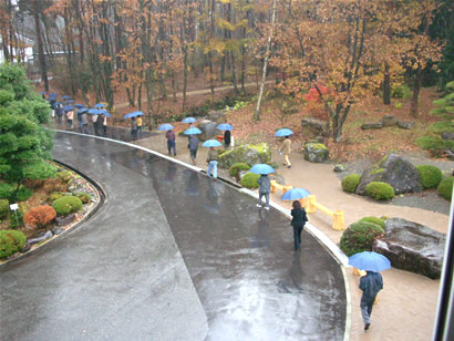 工場にはお客様用の傘をご用意していますので、