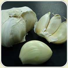 ニンニクは生薬名を「大蒜(たいさん・だいさん)」と言い、古くから胃もたれや腹痛、下痢、寄生虫症などに応用されています。また、最近の研究では高血圧、高脂血症に対する効果や血液が固まるのを防ぐ作用があることが報告されています。 ニンニクに含まれる成分として、イオウ化合物のアリイン、アリシン、スコルジン、アホエンやビタミンB1などが知られています。 アリインそのものは無味無臭ですが、細胞内の酵素によって刺激的かつ独特なにおいを有するアリシンに変化します。 スコルジンは、ニンニク特有のにおいに関係しない無臭の成分で、血液の流れをスムーズにする働きや血中の余分なコレステロールを排除する働きがあります。 ビタミンB1は、疲労回復に重要な成分ですが、アリシンと結合してアリチアミンという物質になると酵素によって分解されにくくなり、体内で有効に働きます。