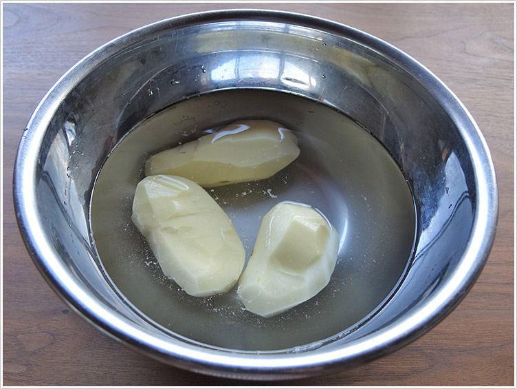 | 1.じゃがいもは皮をむいたら、5分ほど水にさらす。 | ![]() |