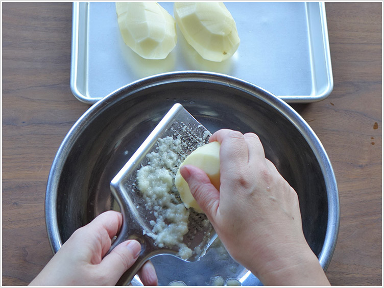 | 3.1.をすりおろし、ザルで軽く水気を切っておく。 | ![]() |