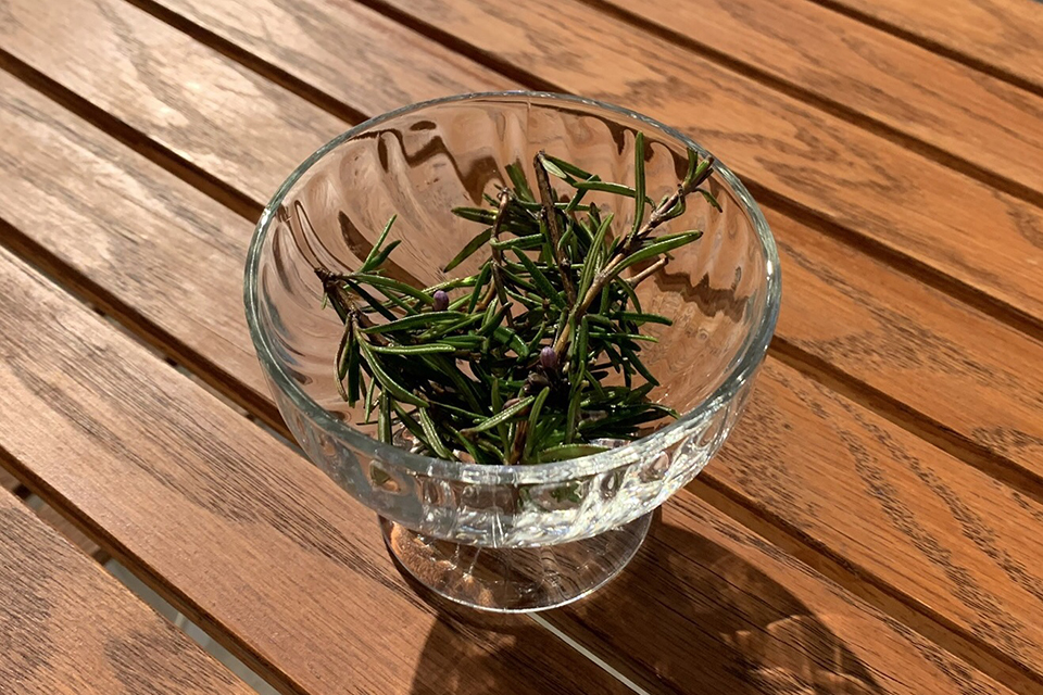 甘くほろ苦い香りが特徴で、メンソールにも似た清涼感もあります。香りが強いので、少量でも香味の変化を感じられます。一枝添えると見た目も素敵です。