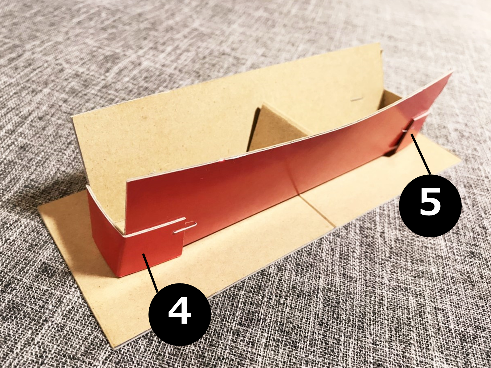 更に❸を写真のように重ね、ホチキスか両面テープで❶と❸を固定します。