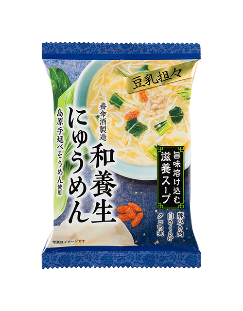 - そうめん(小麦を含む、国内製造)、豆乳(大豆を含む)、デキストリン、米みそ、チンゲン菜、豚肉、ねりごま、でん粉、かつお節エキス、砂糖、酵母エキス、クコの実、昆布エキス、ゼラチン、白きくらげ、食塩、たん白加水分解物、豆板醤、ごま、ごま油/酸化防止剤(V.E)