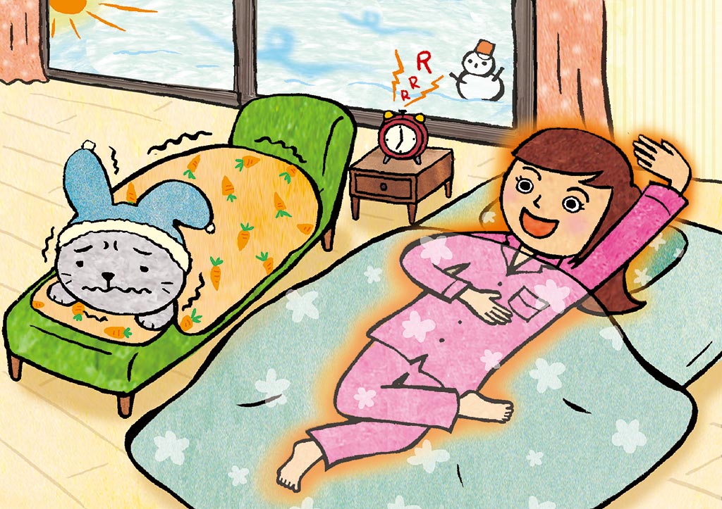 ふとんの中で簡単にできる「寝たまま元気体操」なら、無理せず毎朝続けられますね。寒い朝は「寝たまま元気体操」で血行&筋力をアップして冷えを撃退しましょう!