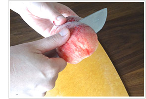 1. 桃は皮つきのままよく洗って、種を取り適当な大きさに切る。